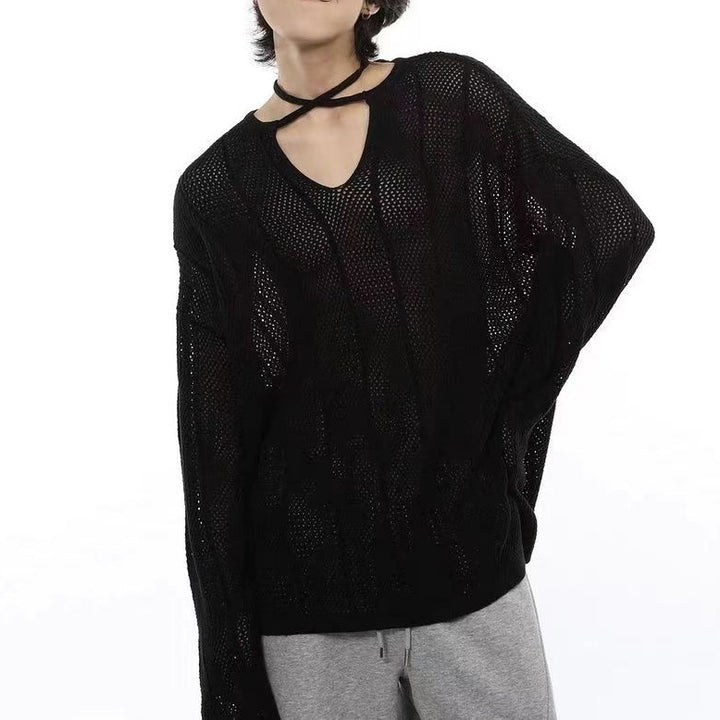Elastic Hollow-out Micro-transparent Long-sleeved Loose Sweater