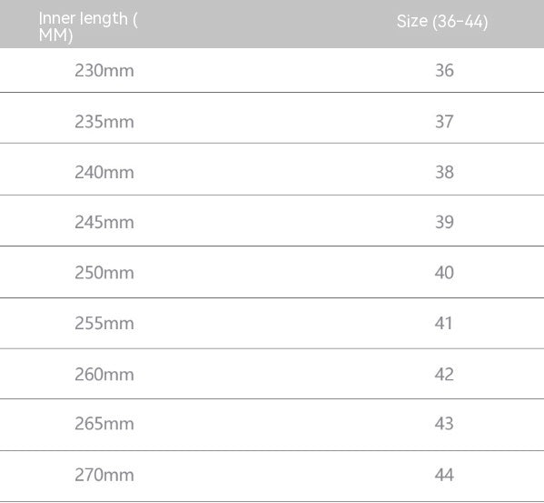 Size: Female size 36, female size 37, female size 38, female size 39,39,40,41,42,43,44