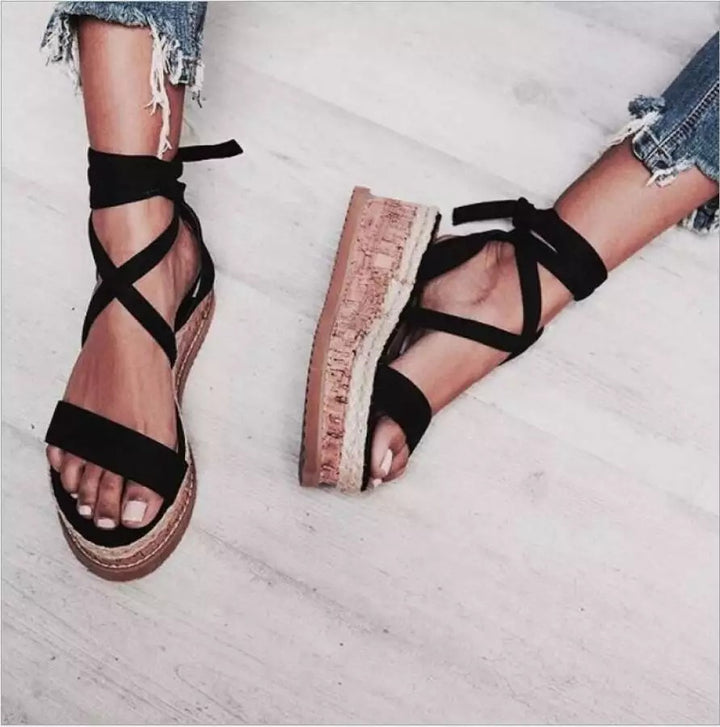 Women's Hemp Rope Wedge Sandals with Cross Straps