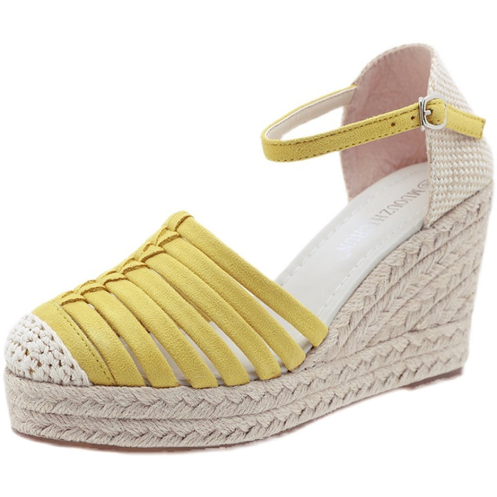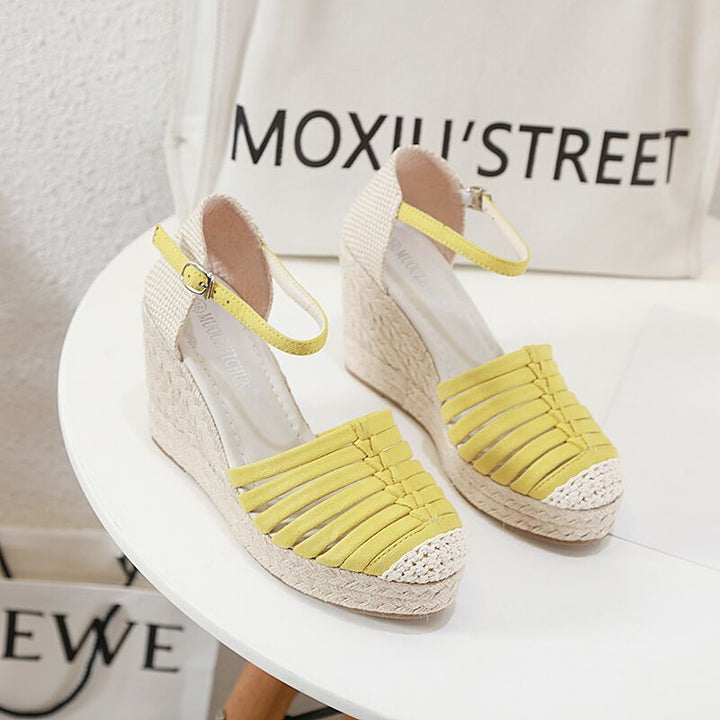 Summer New Thick-Soled Espadrille Wedges High Heels Hemp Rope Sandals Female Roman Shoes
