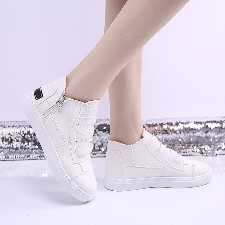 Canvas Flat Shoes Women Side Zipper Walking Sneakers