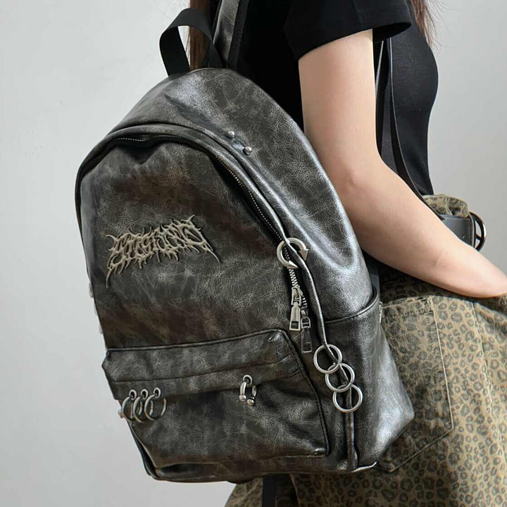 Dark Punk Puncture Rivet Fashionable Retro Large Capacity Backpack For Students