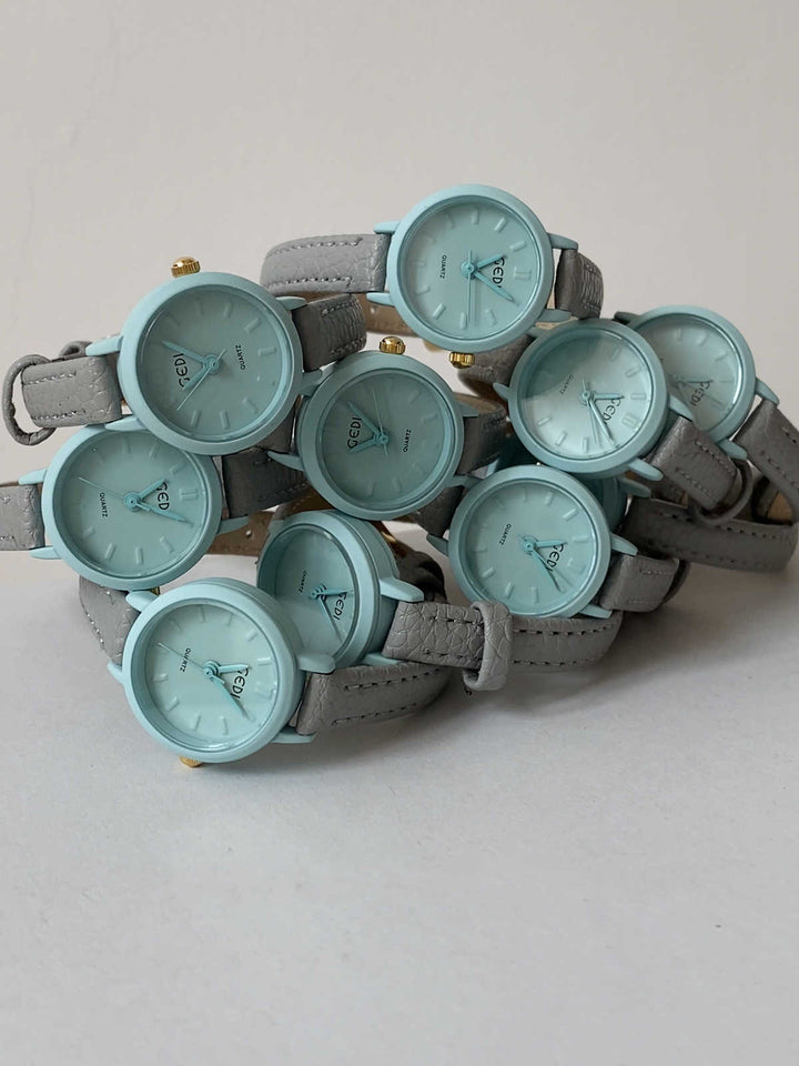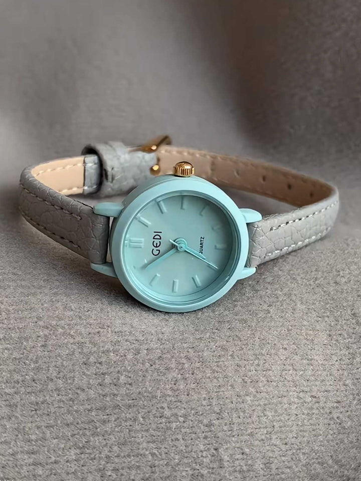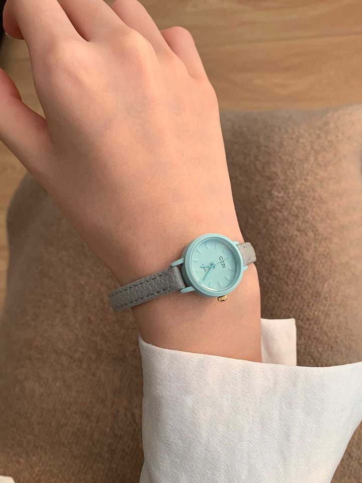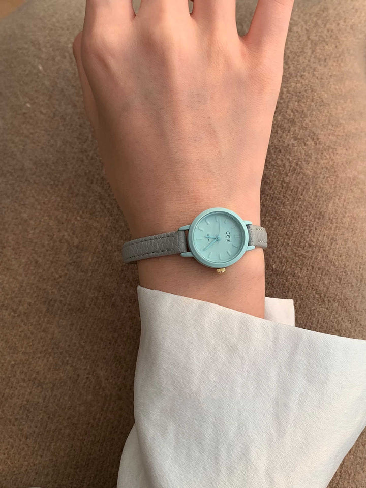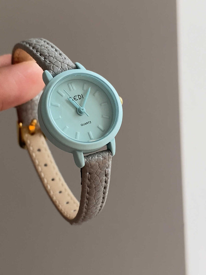 Gray Blue Round Small Dial Belt Women's Simple Fashion Watch