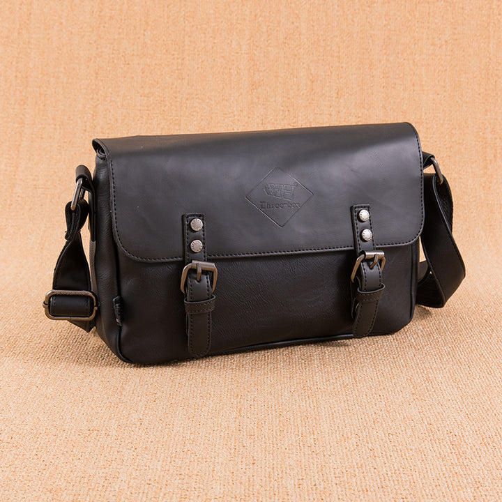 Korean Men's PU Leather Retro Flip Literary Shoulder Bag