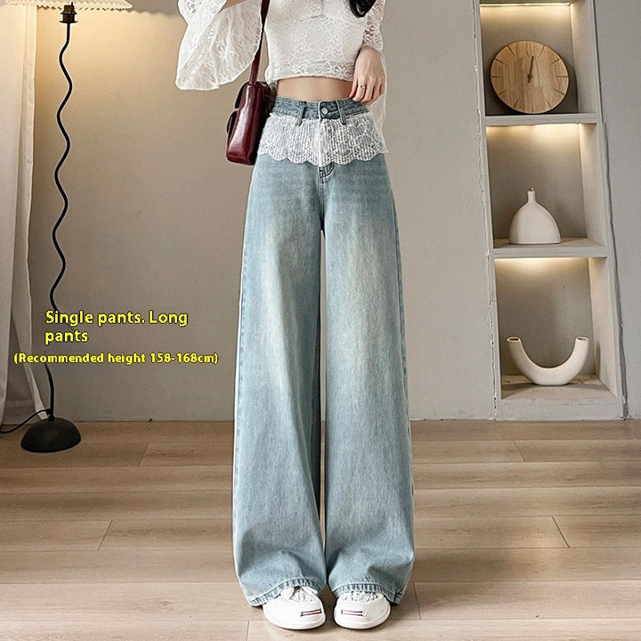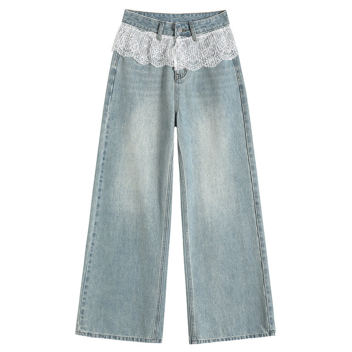 Loose Slimming And Straight Lace Wide Leg Jeans