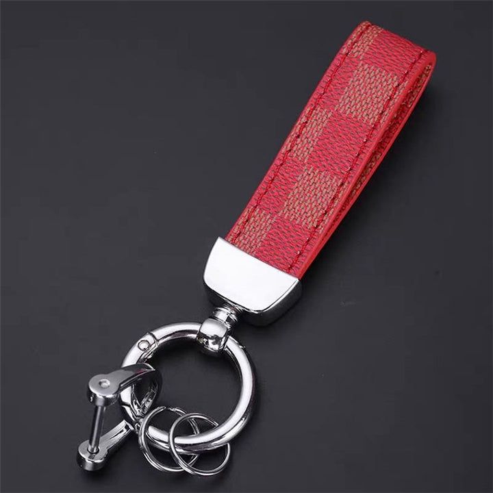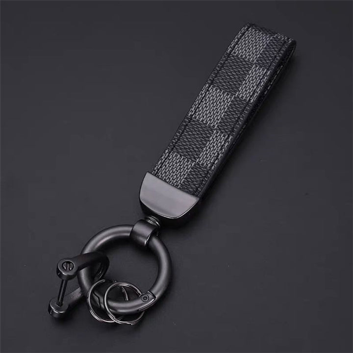 Luxury Genuine Leather Lanyard Keychain Men Women Square Pattern Gunmetal Buckle Car Key Ring Holder Jewelry Gift Chaveiro