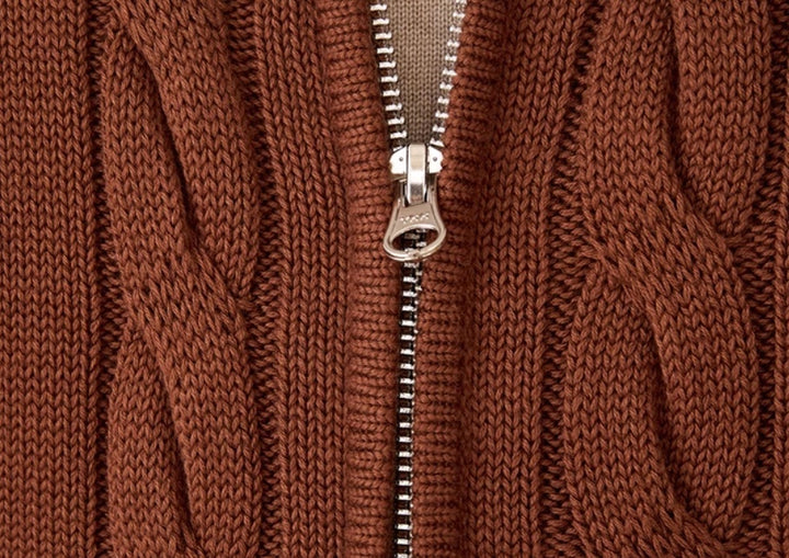 Pure Cotton Knitted British Thickened Heavy Weight Twisted Double Zipper Cardigan