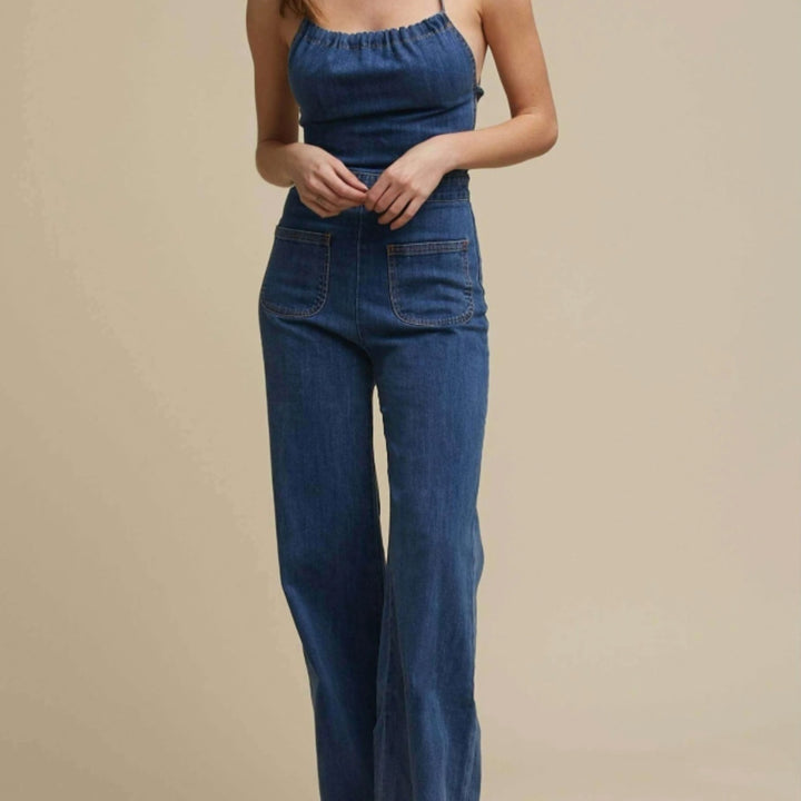 Slim Fit Slimming Fashion Street Retro Style High Waist Denim Jumpsuit