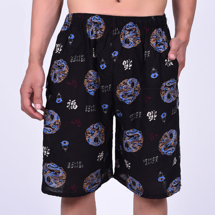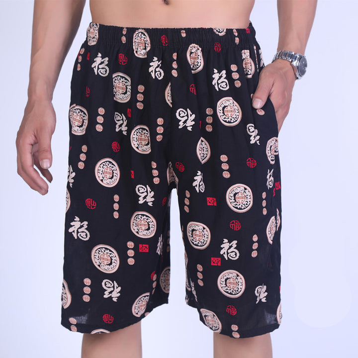 Tang Suit Cotton Cotton Silk Loose Shorts Plus Fat Big Size Big Pants For The Elderly Home Five-Point Pants