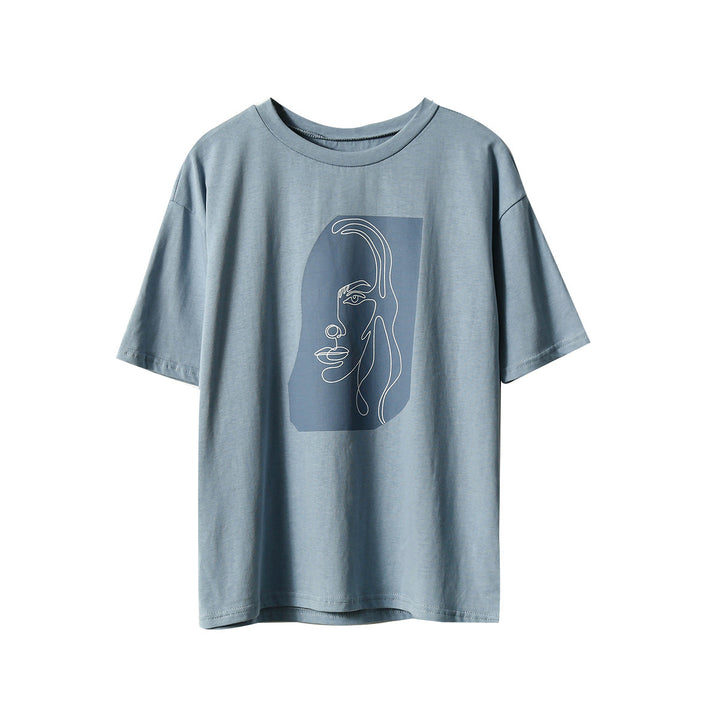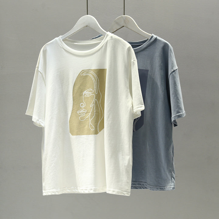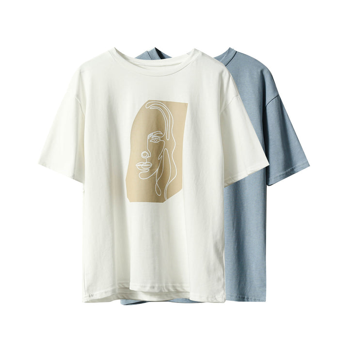 Toppies Abstract T-shirts Character Printing Women Tops Solid Color Summer white Cotton Tops Tees harajuku clothing